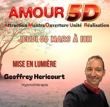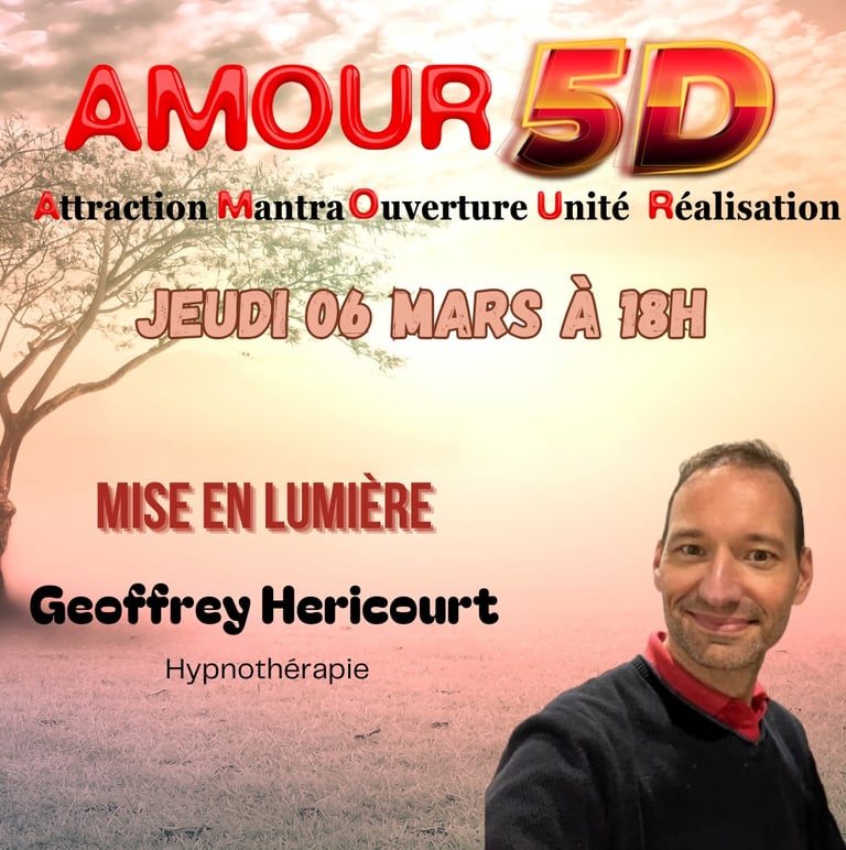 Retrouvez-moi le 6/03/2025 prochain, lors d'une interview exclusive réalisée par AMOUR 5D au cours de laquelle j'exposerai ma vision de l'accompagnement avec l'hypnose thérapeutique.