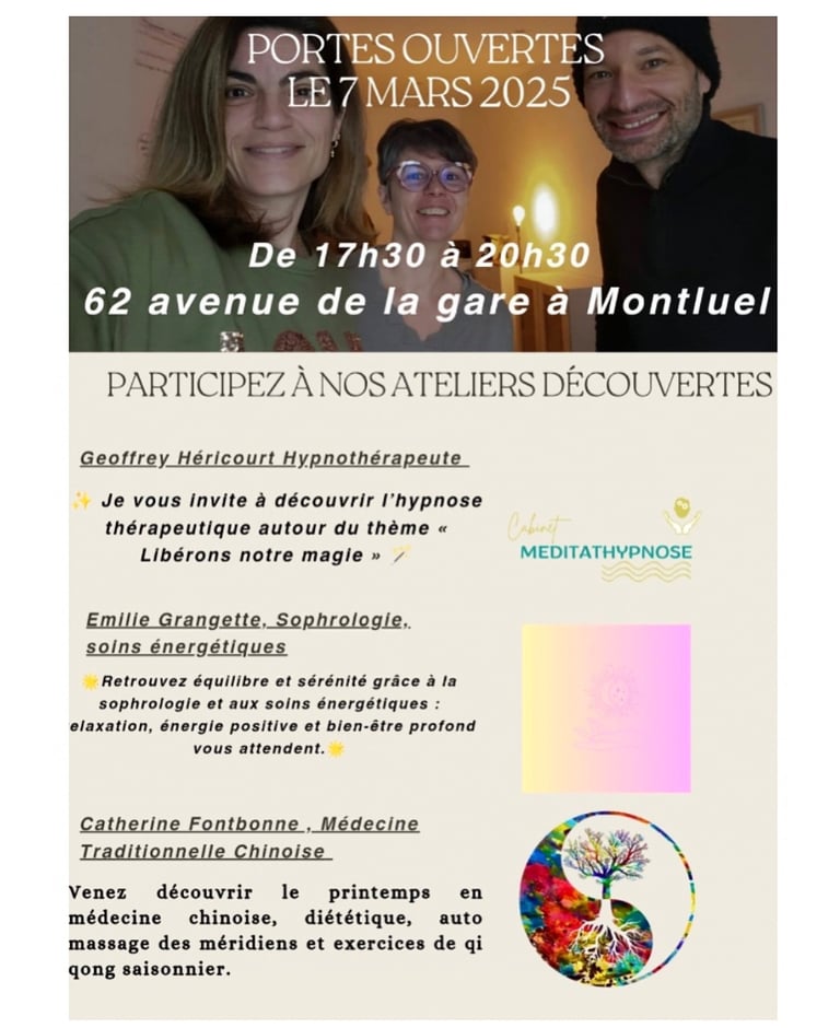 Nous vous attendons le vendredi 7 mars 2025 à partir de 17h30 au cabinet situé au 62 Avenue de la Gare à Montluel (01) à l'occasion des portes ouvertes du cabinet.